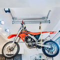 Weary of fending off large objects? Auxx-One takes life to whole new levels! With its powerful 400 lb capacity, this single-motor marvel can lift a variety of heavy objects to great heights, such as bicycles, canoes, truck tops, and fifth-wheel hitches. Use the wireless remote control to guarantee safety while keeping the floor free. With this heavyweight hero for all your garage storage needs, you can revolutionize your area right now.