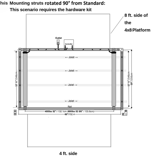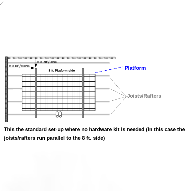 Any ceiling, including sloped ceilings and rafters and joists, may support the Auxx-Lift. IT'S AN OPTIONAL KIT: The platform's extended side of the Auxx-lift aligns with the ceiling joists. When you want the platform to run perpendicular to your joists, you need this extra hardware.
